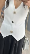 Ekru Farklı Düğme Detaylı Kolsuz Bluz