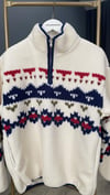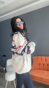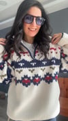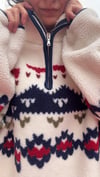 Ekru Lacivert Geometrik Desenli Fermuarlı Sweatshirt