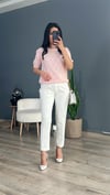 Pudra Baklava Desenli Önü Taşlı Triko Bluz