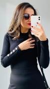 Siyah Fitilli Kolu Düğme Detaylı Bluz